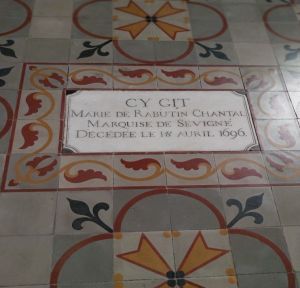 Plaque commémorative du tombeau de la Marquise de Sévigné