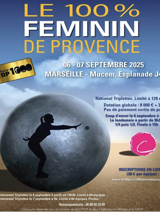 L'association « l'Esplanade Ganay bouliste » organise demain et dimanche la 2e édition du « 100 % féminin de Provence ». Plus d'une centaine de triplettes sont attendues devant le Mucem. Des ateliers et des initiations sont aussi proposés aux visiteurs. Les recettes de la buvette et de la tombola iront à l'association