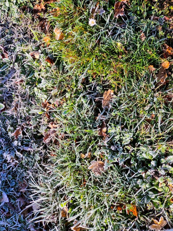 Sur le sol, une mosaïque : brins d’herbe rigides, feuilles d’automne oubliées, petites pousses encore vertes, toutes enveloppées de cristaux. Pendant quelques instants, j’ai eu l’impression que la nature retenait son souffle. Plus rien ne bougeait.