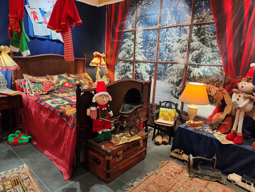 Il y a une photo qui ressemble à une chambre de conte : un lit, des tissus rouges, des jouets, une lumière chaude, et au fond une fenêtre donnant sur une forêt enneigée. Tout semble doux, presque parfait. Comme une carte postale.