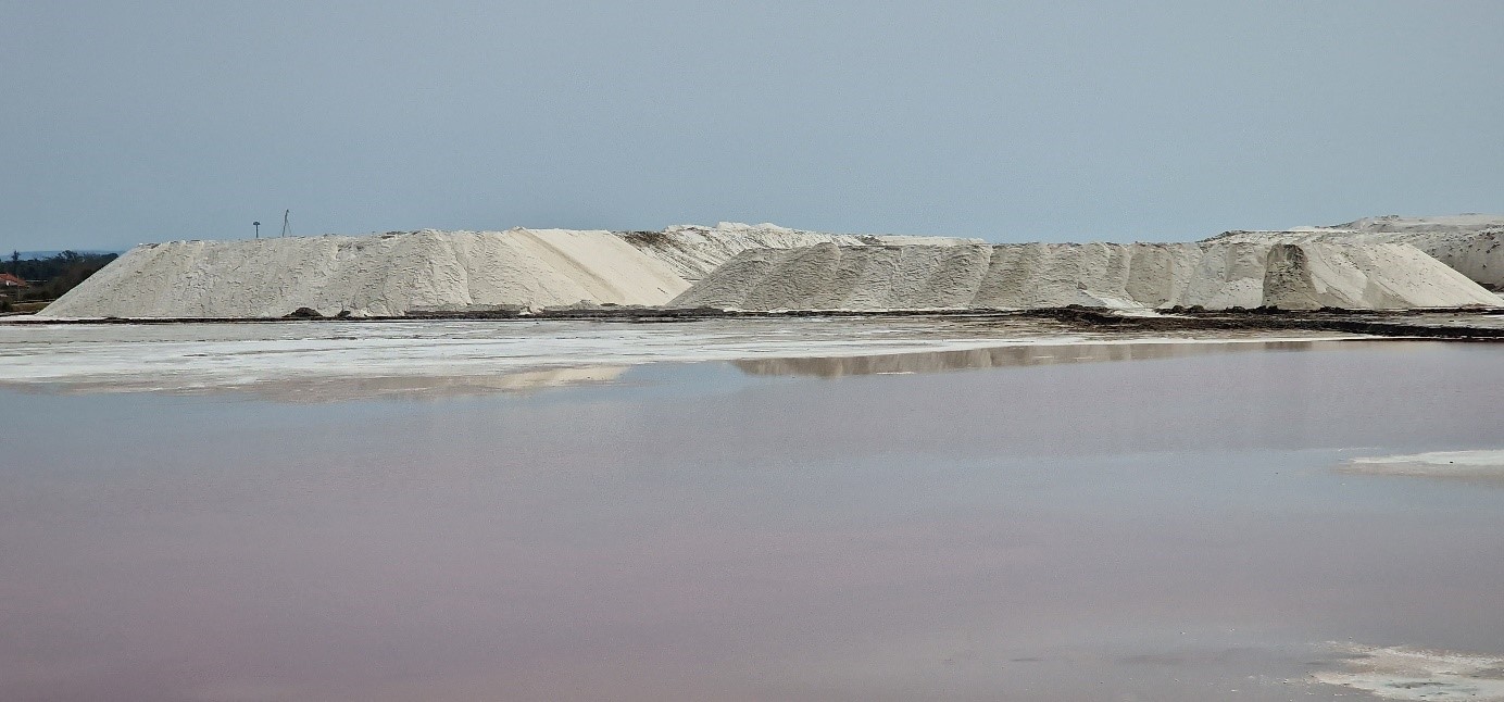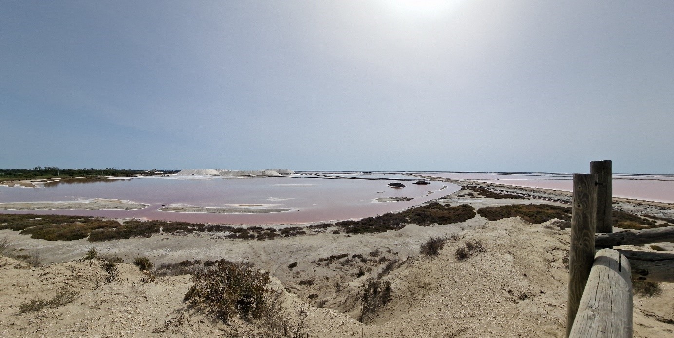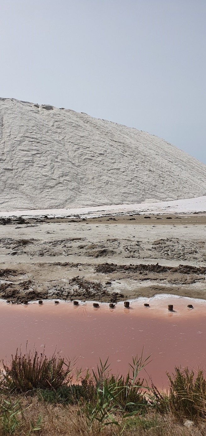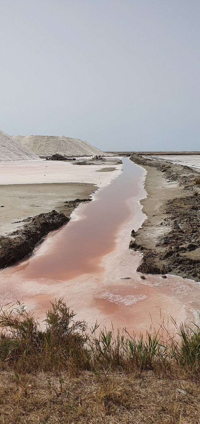 Des algues microscopiques, appelées « dunliela salina » prolifèrent dans ces bassins et colore l’eau en rose. Cette algue riche en pigment rouge est le repas préféré de la crevette artémia, vivant exclusivement dans les salins et du flamand rose. On comprend aisément d’où leur vient leur robe splendide ! Quand le taux de sel des bassins augmente, la petite crevette disparait et on distingue une "boue rouge" qui résulte de la prolifération de l'algue. Cette micro-algue est récoltée afin d'être utilisée comme ingrédient dans des cosmétiques grâce à ses formidables propriétés hydratantes, protectrices et émollientes.