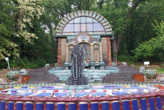 Le parc alentour vu perçu et construit par lui également avec des fontaines. Otto Wagner y construit également la fontaine de Moïse.